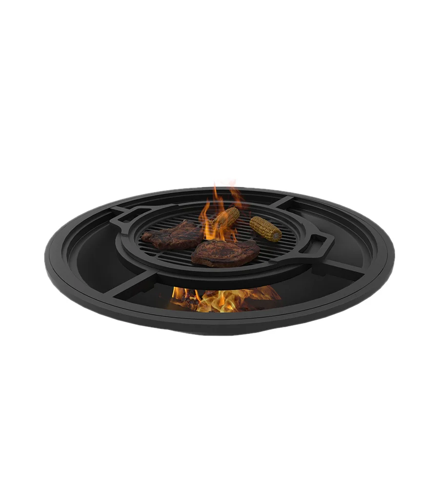 Адаптер для костровой чаши Везувий Fantastic и чугунного Везувий Фантастик Гриль 700, с внутренним кольцом в 380 миллиметров, позволяет готовить на более широком ассортименте посуды Везувий. Адаптер весит 3,5 килограмма, его легко ставить на чугунную чашу и снимать с неё. Адаптер выдерживает значительные весовые нагрузки – до 30 килограмм. Рабочее кольцо диаметром 380 миллиметров соединяется с кольцом-подставкой стальными прутками диаметром 10 миллиметров. Оно размещается на высоте 10 см от нижнего кольца. Достаточное расстояние от дна чаши до кольца (28 см) позволяет разместить на адаптере не только плоскую решётку-гриль Везувий диаметром 38 см, но и глубокую посуду: сковороду, казаны Везувий и Сербский казан 14л. Высота адаптера позволяет совершенно спокойно подложить в костровую чашу дров или поворошить угли в глубине самой чаши. Оптимальный размер посуды, устанавливаемой на этот адаптер, удобен для готовки в небольшой семье из 4-5 человек. Адаптер – полезное, лёгкое и простое приспособление, которое поможет вам сделать целый поварской комплекс из чугунной костровой чаши Везувий Фантастик и добавить новых функций чугунному Фантастик Гриль 700.