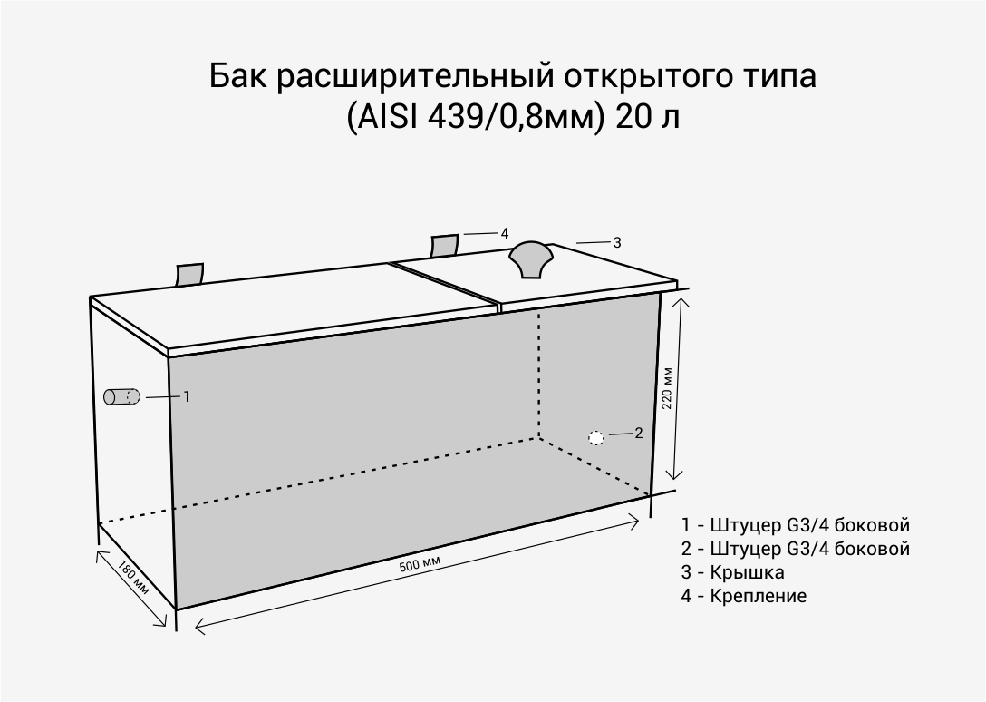 Расширительный бак для самотечной системы отопления предназначен для компенсации изменения объема теплоносителя при его расширении в результате нагрева. Расширительный бак устанавливается в наивысшей точке отопительной системы.
