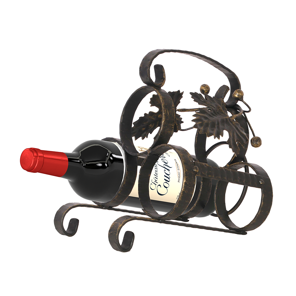 Бутылочница изготовлена из кованой стальной ленты, в качестве декора используются стальные элементы, стилизованные под крупные листья винограда. По дизайну изделие сочетается с дровницами и другими аксессуарами Везувий, выполненных в том же стиле. Поверхность изделия окрашена надёжной порошковой краской чёрного цвета и патинирована бронзовой краской.