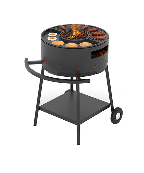 В центре плиты предусмотрено круглое отверстие, через которое удобно обслуживать мангал: добавлять дров, подсыпать уголь из мешка или перемещать горящие угли под зону, требующую высокой температуры нагрева.