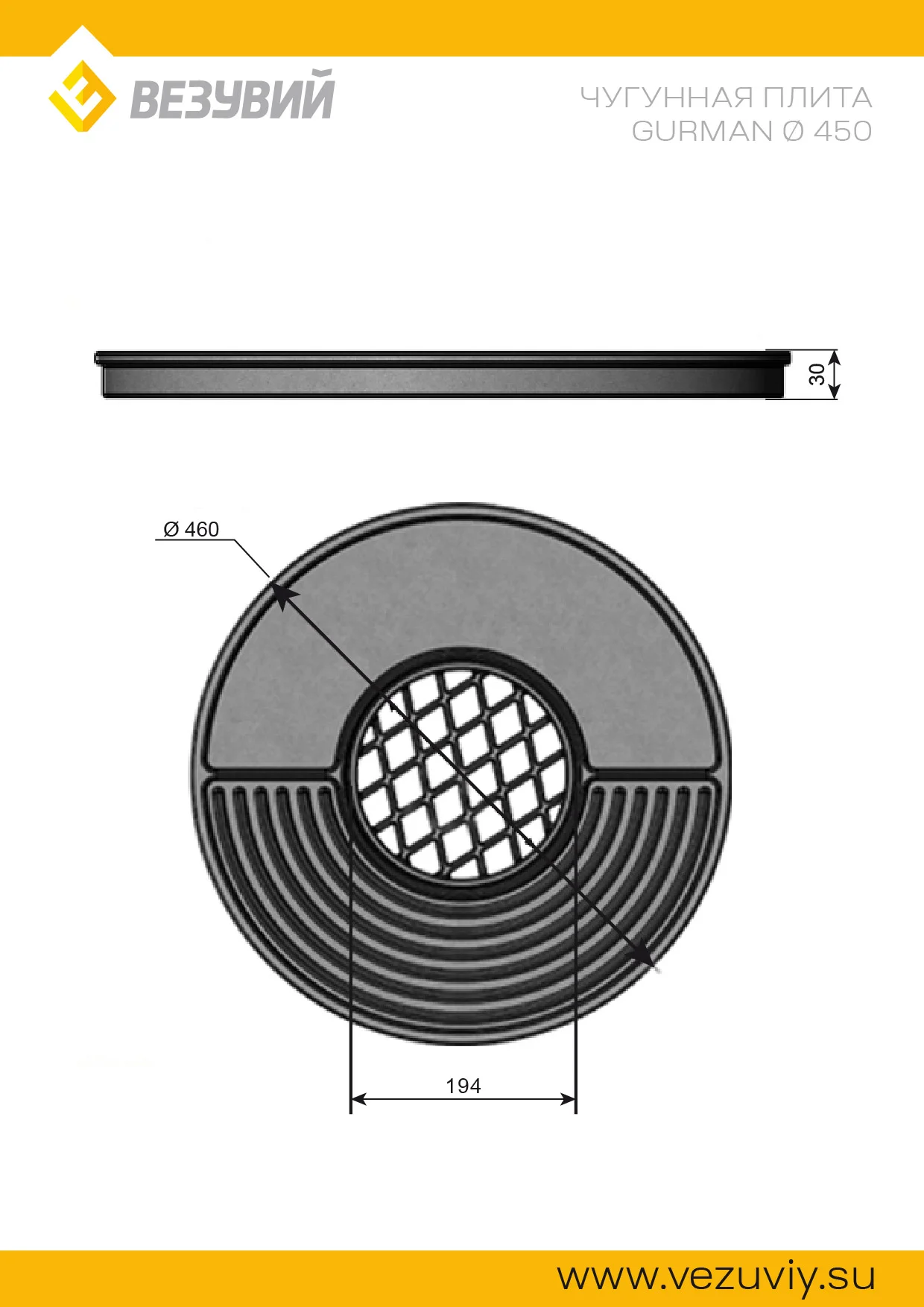 Чугунная плита Gurman Ø450 из качественного пищевого чугуна предназначена для приготовления на открытом огне самых разнообразных блюд. Эта конструкция разработана для совмещения с мангалом Везувий Дачник.