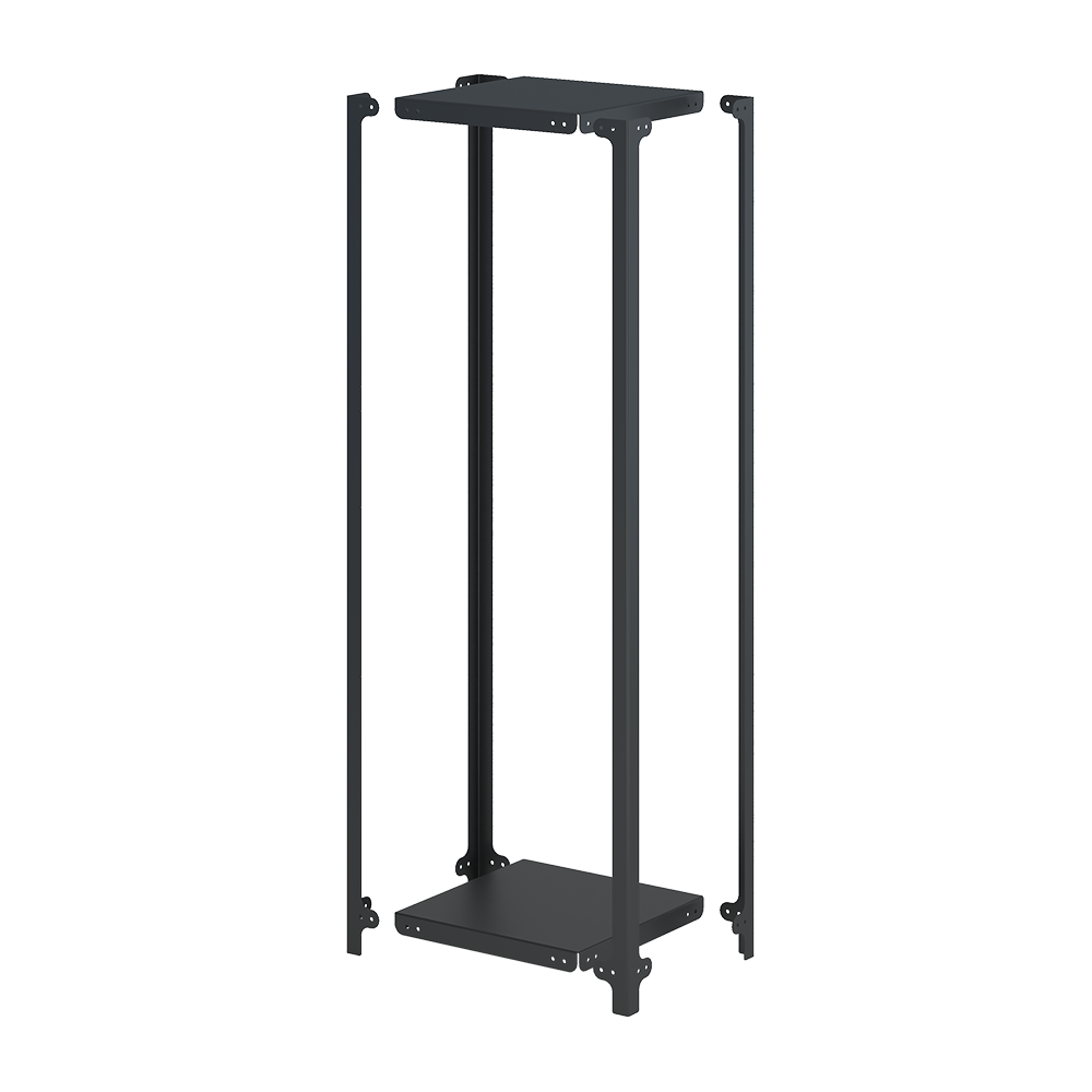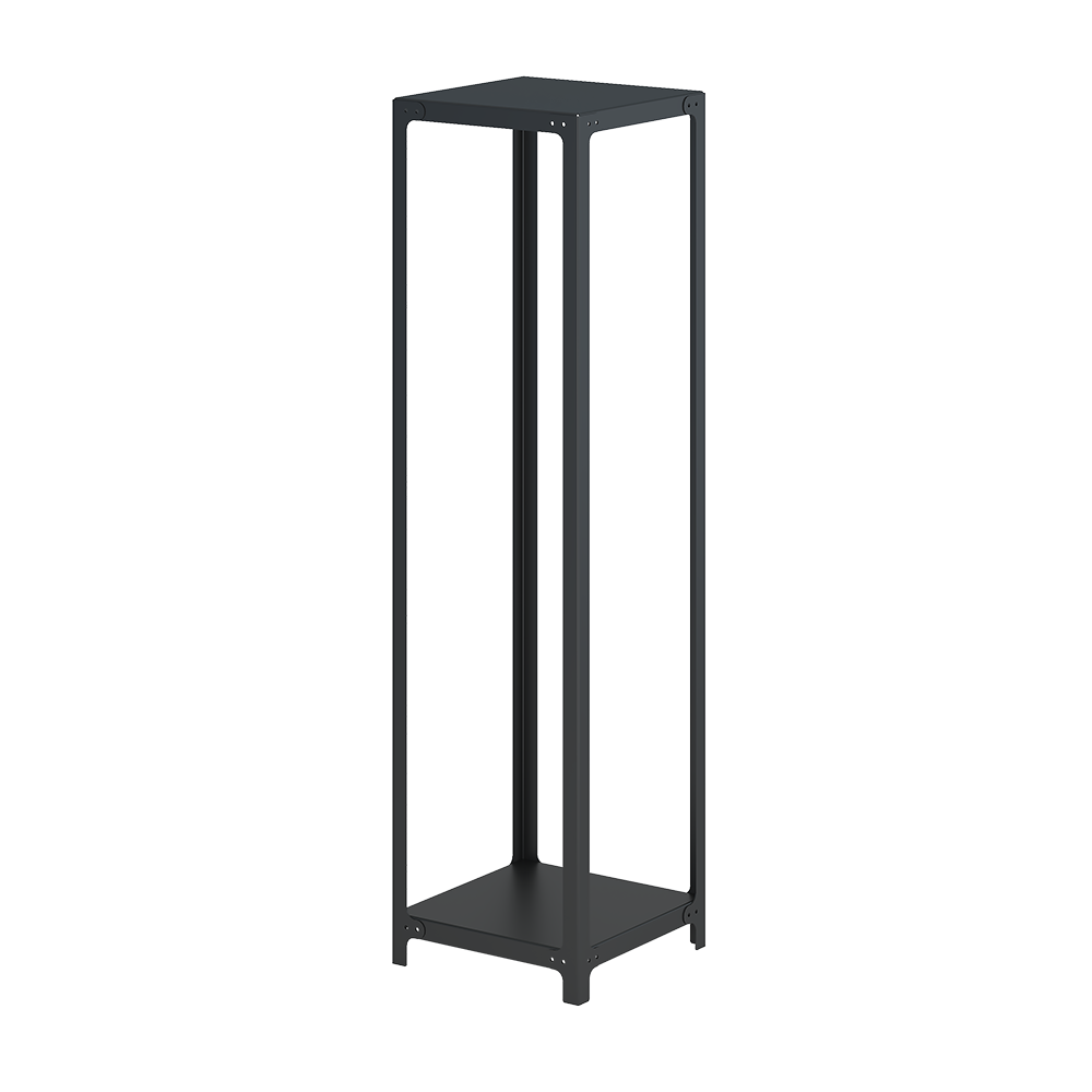 Каркас дровницы изготовлен из стальной полосы, в верхней и нижней частях есть элементы для крепления полок. Стальные полки и каркас окрашены порошковой краской, устойчивой к механически повреждениям.