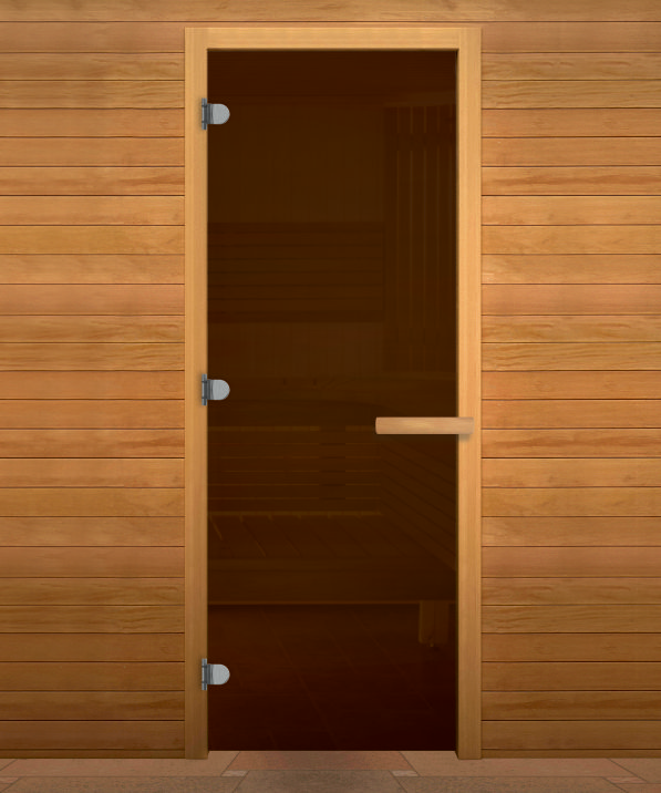 Стеклянная дверь для сауны изготовлена из высокопрочного закалённого стекла, что делает дверь максимально безопасной. Дверная коробка изготовлена из высококлассной срощенной породы древесины.