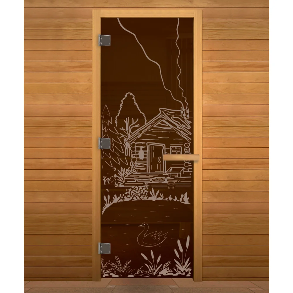 Стеклянная дверь для сауны изготовлена из высокопрочного закалённого стекла, что делает дверь максимально безопасной. Дверная коробка изготовлена из высококлассной срощенной породы древесины.