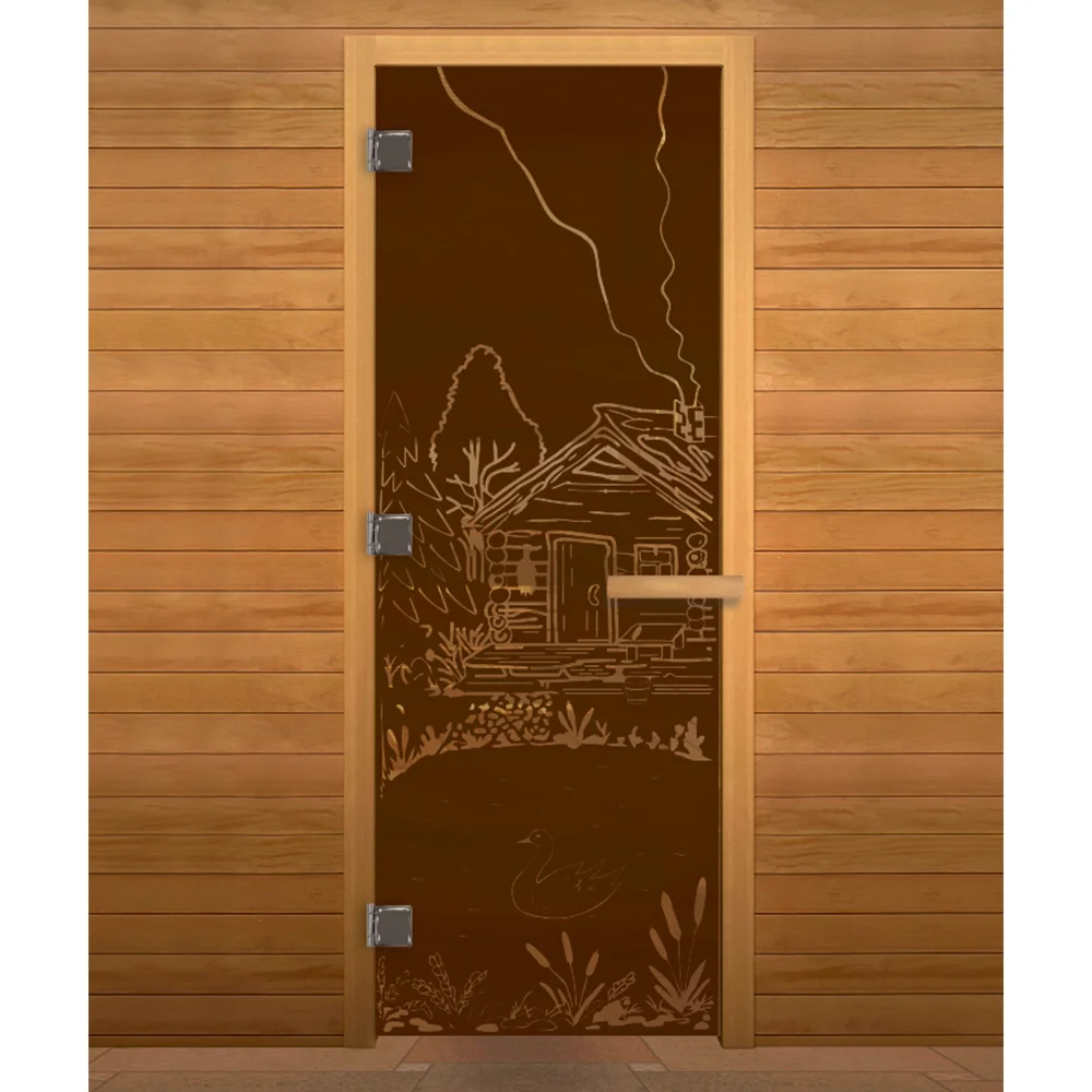 Стеклянная дверь для сауны изготовлена из высокопрочного закалённого стекла, что делает дверь максимально безопасной. Дверная коробка изготовлена из высококлассной срощенной породы древесины.