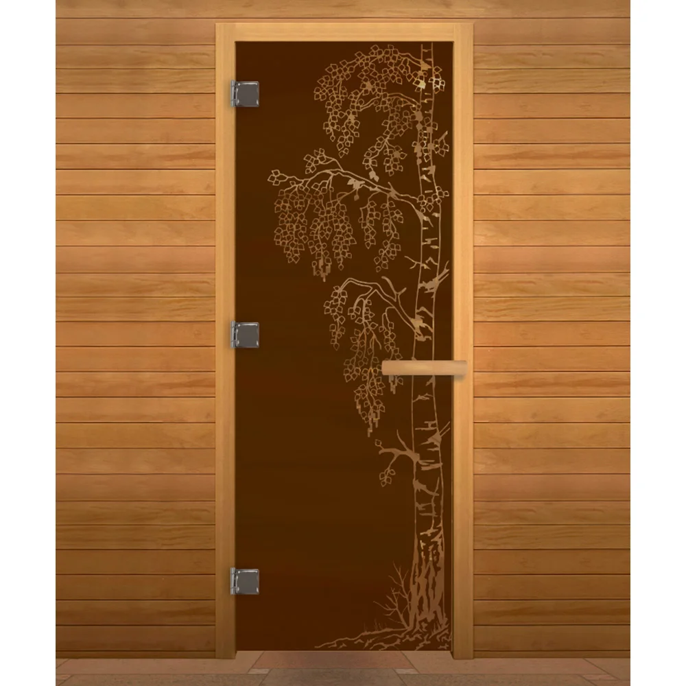 Стеклянная дверь для сауны изготовлена из высокопрочного закалённого стекла, что делает дверь максимально безопасной. Дверная коробка изготовлена из высококлассной срощенной породы древесины.