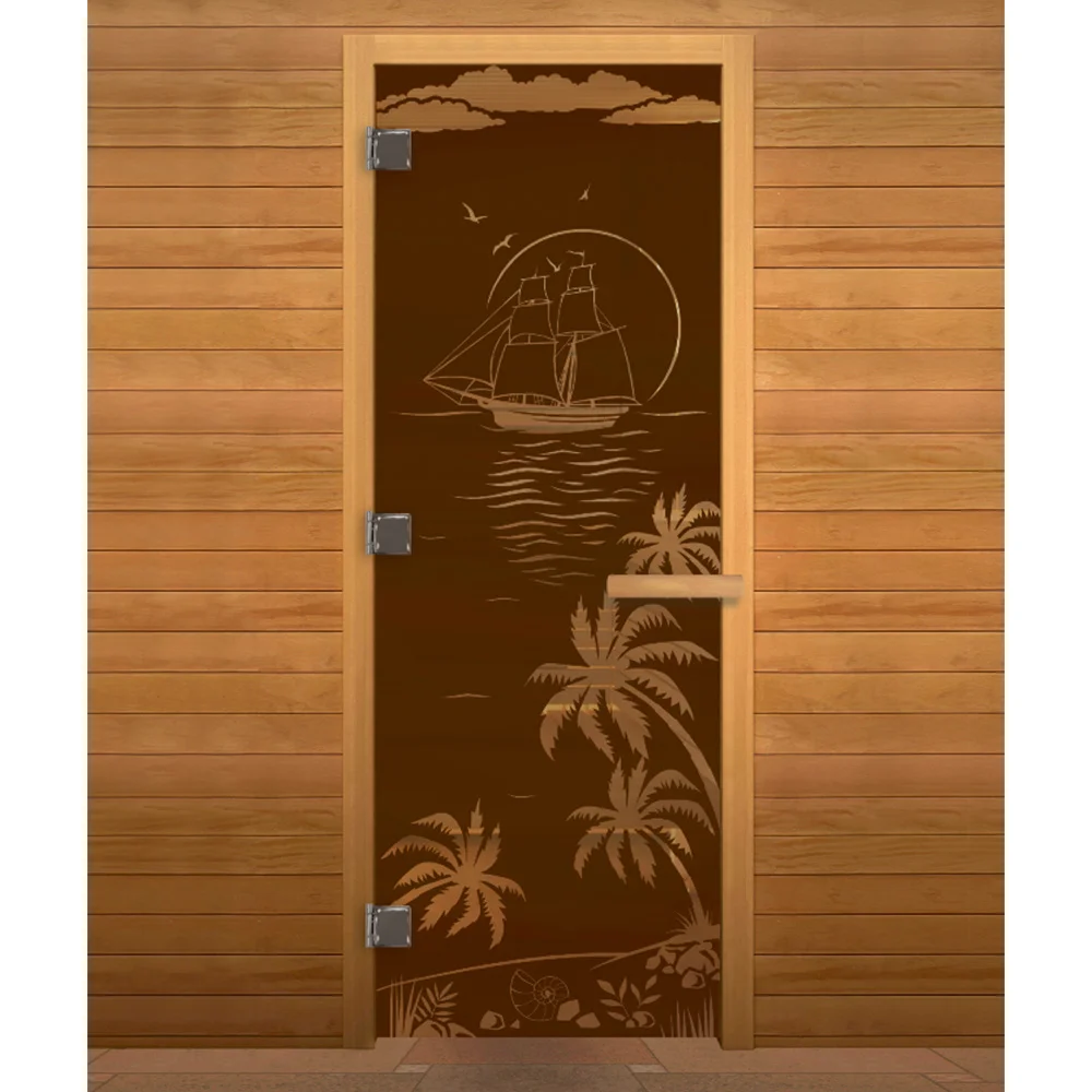 Стеклянная дверь для сауны изготовлена из высокопрочного закалённого стекла, что делает дверь максимально безопасной. Дверная коробка изготовлена из высококлассной срощенной породы древесины.