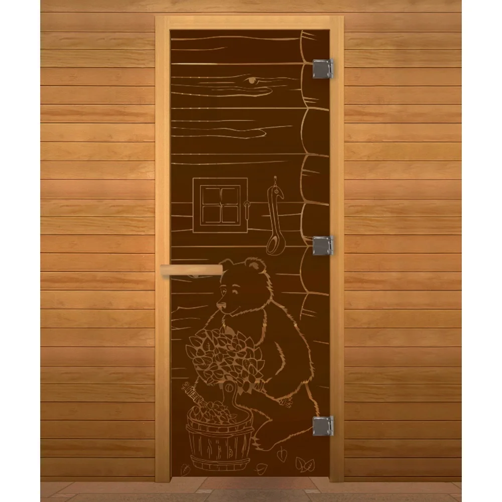 Стеклянная дверь для сауны изготовлена из высокопрочного закалённого стекла, что делает дверь максимально безопасной. Дверная коробка изготовлена из высококлассной срощенной породы древесины.