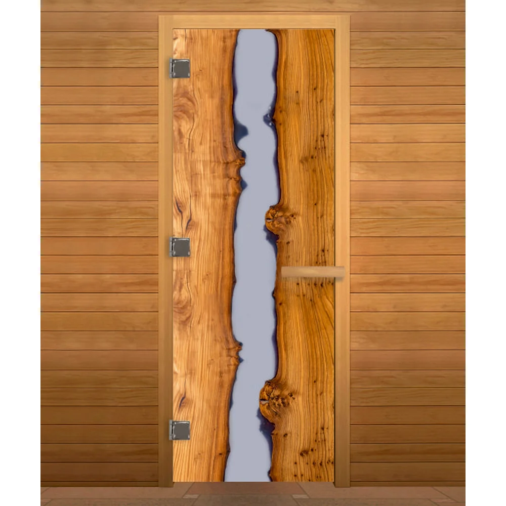 Стеклянная дверь для сауны изготовлена из высокопрочного закалённого стекла, что делает дверь максимально безопасной. Дверная коробка изготовлена из высококлассной срощенной породы древесины.