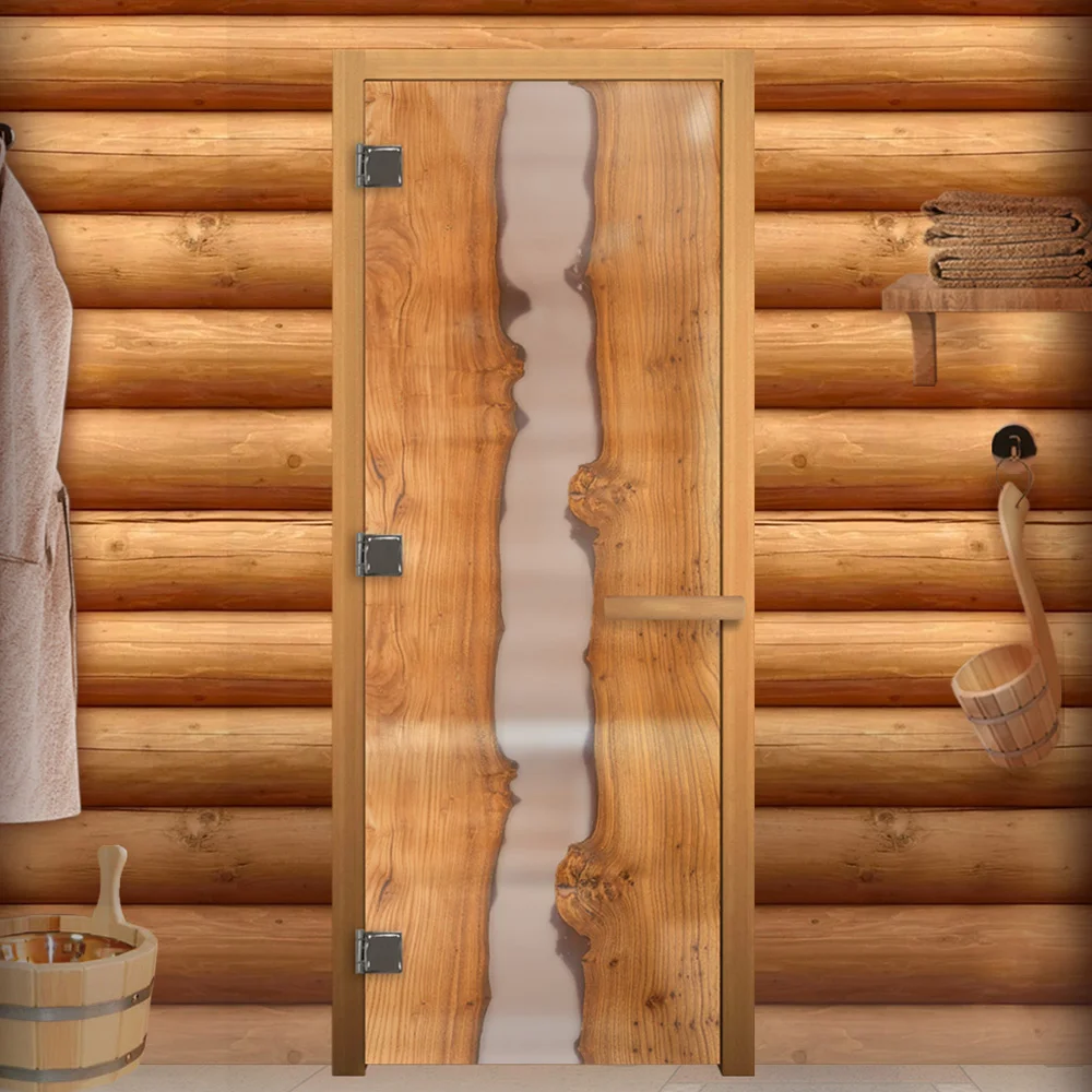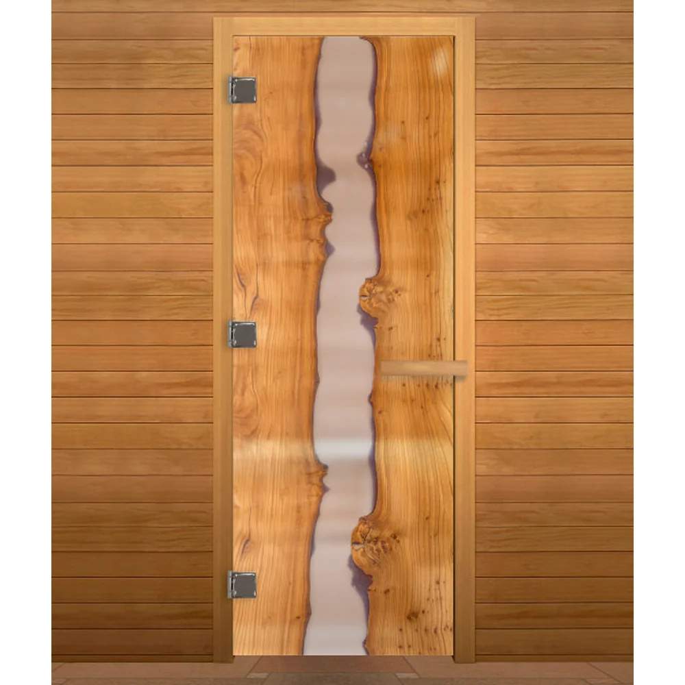 Стеклянная дверь для сауны изготовлена из высокопрочного закалённого стекла, что делает дверь максимально безопасной. Дверная коробка изготовлена из высококлассной срощенной породы древесины.