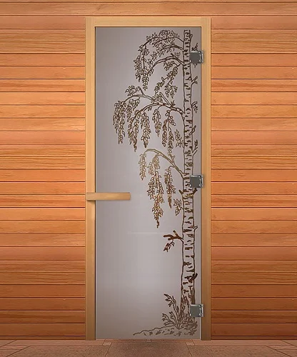Стеклянная дверь для сауны изготовлена из высокопрочного закалённого стекла, что делает дверь максимально безопасной. Дверная коробка изготовлена из высококлассной срощенной породы древесины.