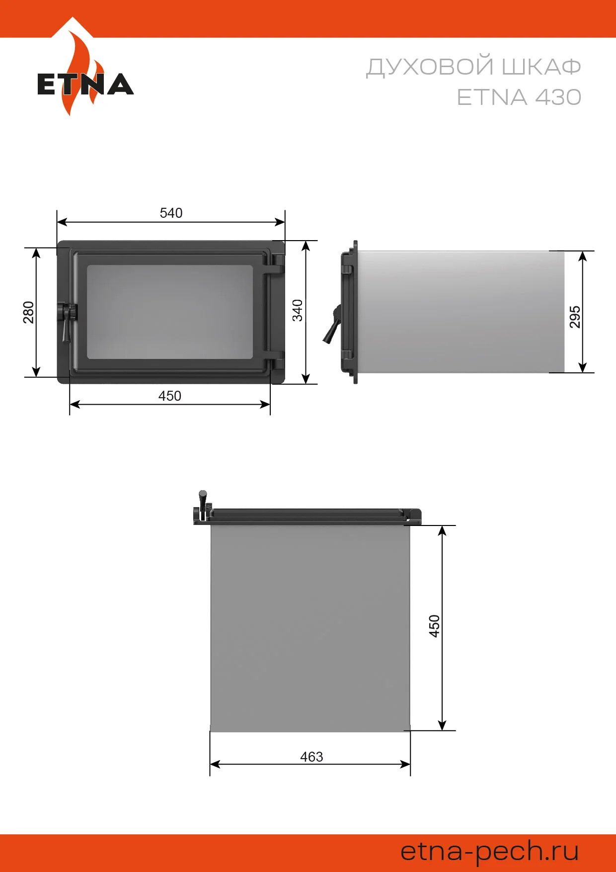 Духовой шкаф ЭТНА 430 предназначен для установки в кирпичные печи индивидуального изготовления.