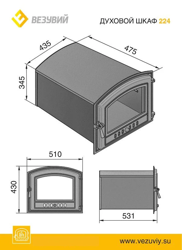 - Материал: дверца-чугун, корпус-сталь