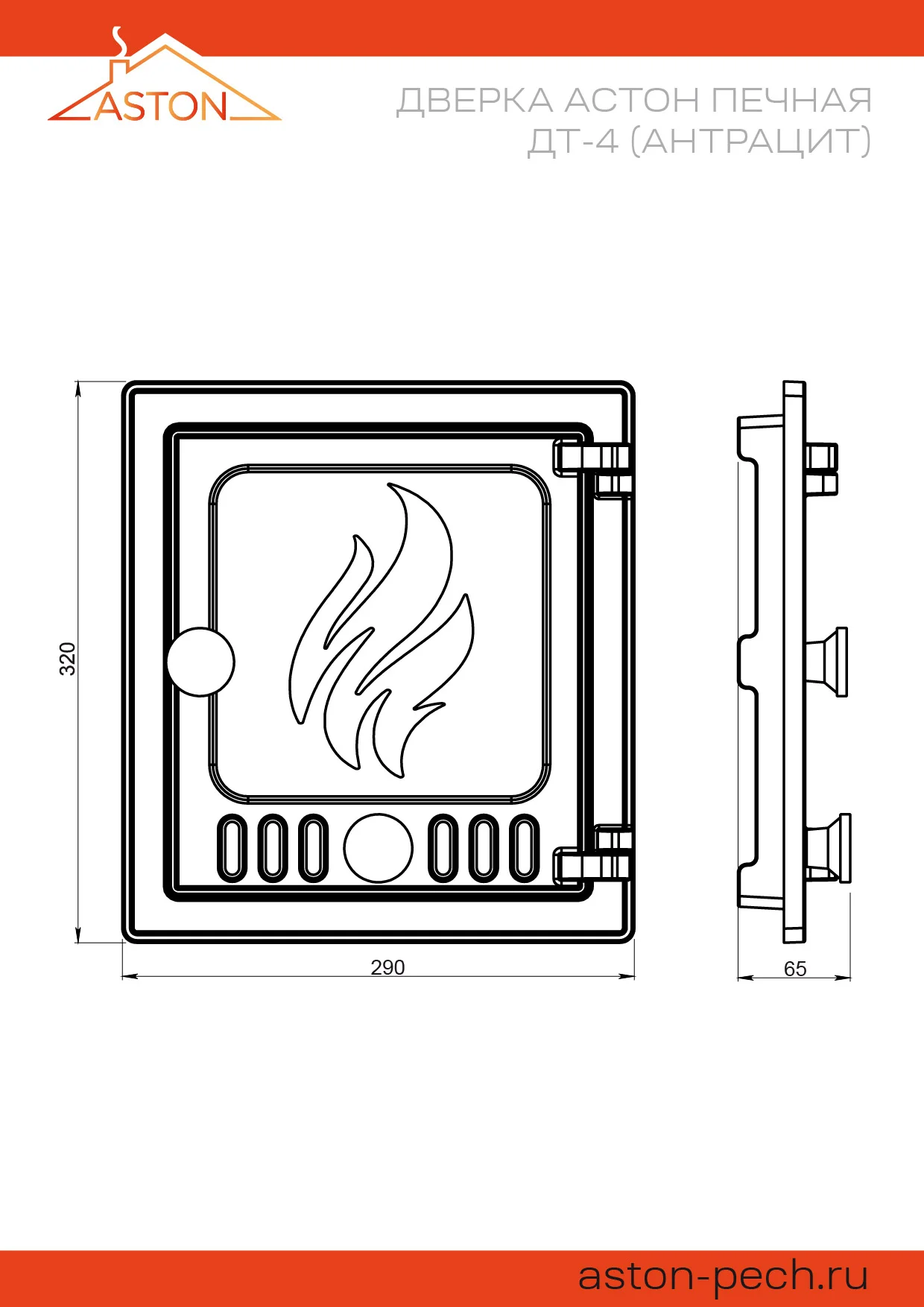 Печная дверка Астон, модель ДТ-4 Антрацит