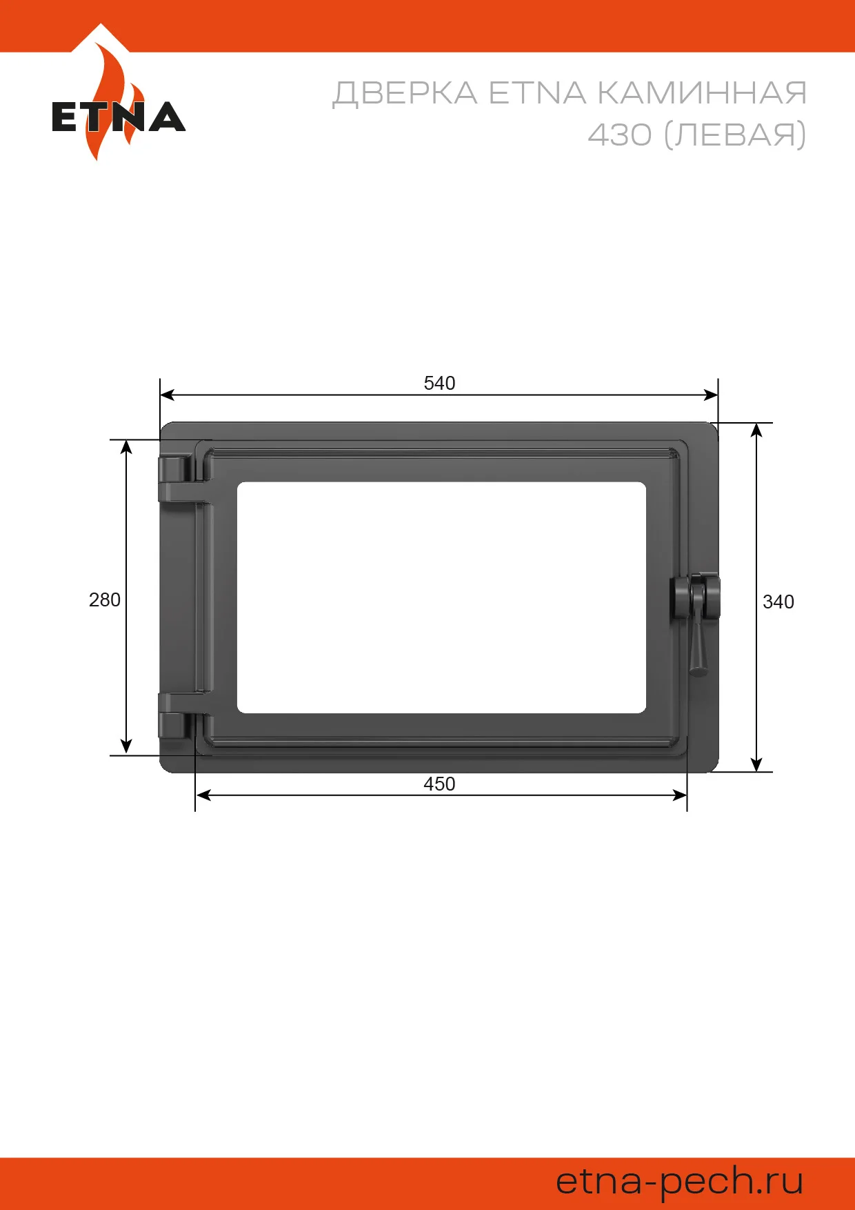 Каминная дверь Этна 430 предназначена для установки в твердотопливные печи, закрытые камины и духовые шкафы.