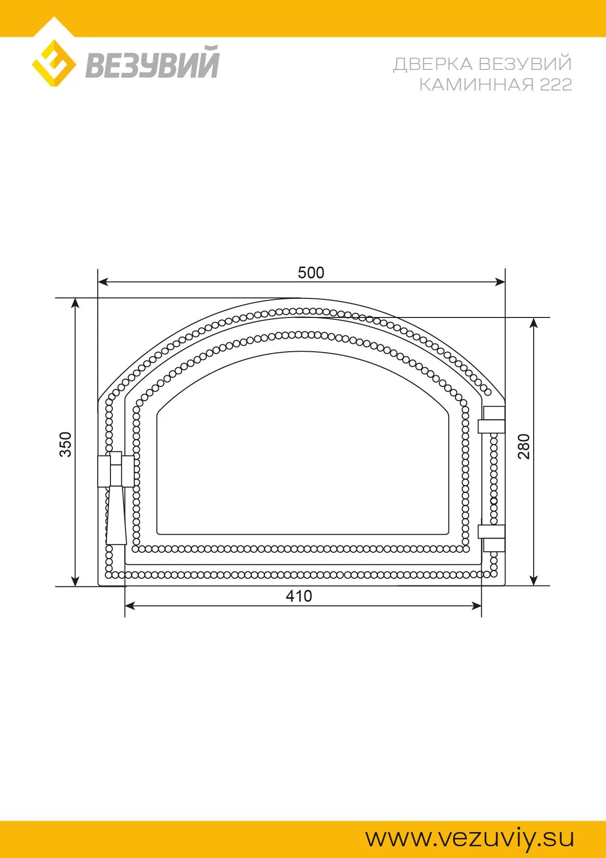 Двери изготовлены из качественного чугуна по ГОСТ 1412-85, производятся в комплектациях с глухим полотном или стеклом. Ручки дверей также сделаны из чугуна.