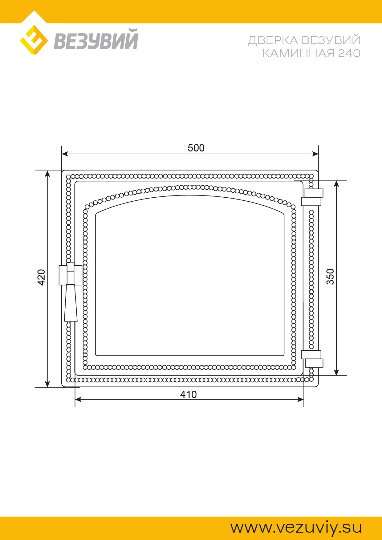 Двери изготовлены из качественного чугуна по ГОСТ 1412-85, производятся в комплектациях с глухим полотном или стеклом. Ручки дверей также сделаны из чугуна.