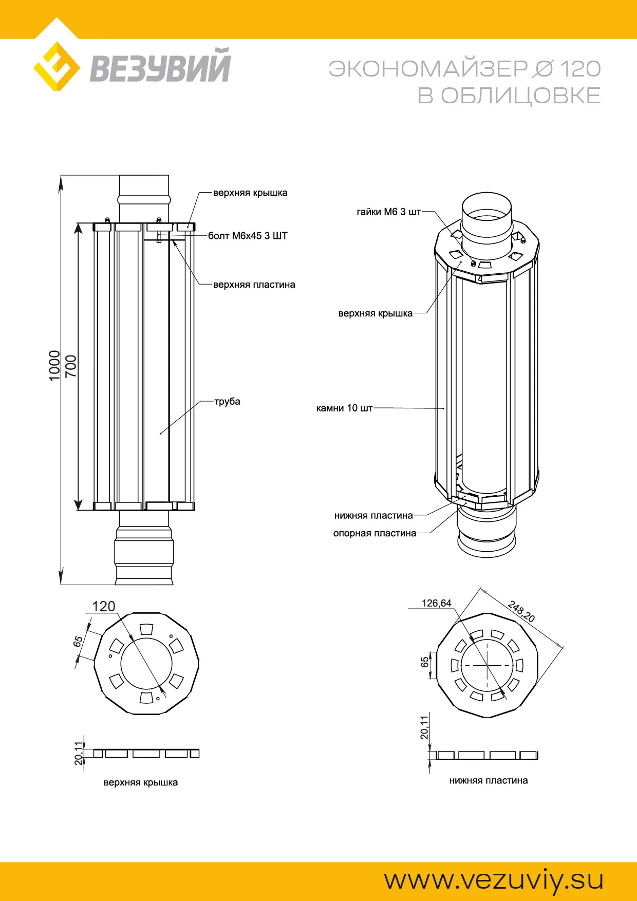 Экономайзер изготовлен из нержавеющей стали толщиной 1 миллиметр, и может быть установлен в качестве замены первого метра дымохода в парной. Конструкция экономайзера предусматривает установку в качестве внешней облицовки десяти ламелей из натурального камня. Облицовка хорошо запасает тепло, равномерно передаёт его во внешнее пространство и защищает парящихся от инфракрасного излучения, идущего со старта дымохода.Шиберную заслонку можно устанавливать как ниже, так и выше экономайзера.Экономайзер особенно хорошо смотрится на печах в каменной облицовке. Мы предлагаем экономайзер в трёх исполнениях: талькохлорит, пироксенит и пироксенит элит.В комплект поставки входят основание экономайзера из нержавеющей стали и десять ламелей из выбранного вами вида камня.