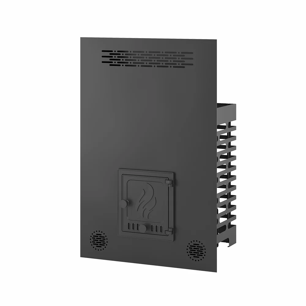 Фронтальный экран устанавливается на топочный тоннель сверху, позволяет на своей основе собрать стену между парной и предбанником из кирпича или дерева.