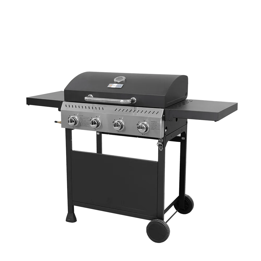 Гриль оснащен газовыми конфорками, общей номинальной мощностью 14 кВт. Он не требует углей или дров, что делает его более удобным в эксплуатации. Вам не нужно беспокоиться о разжигании огня, а достаточно просто подключить баллон с газом (Бутан (G30) 28-30 мбар или Пропан (G31) 37 мбар) и зажечь огонь с помощью встроенного пьезоподжига. Это экономит время и силы.