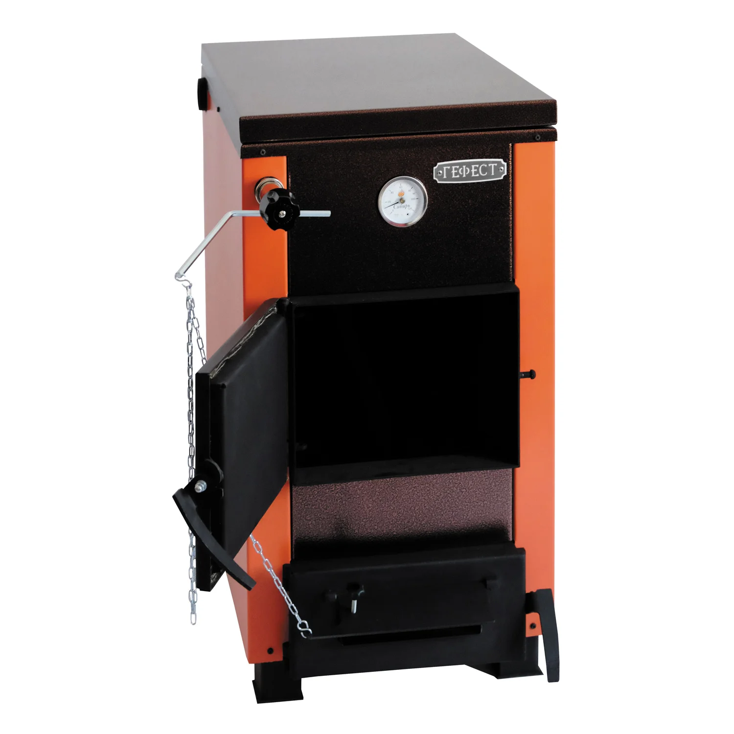 Отопительный котел "Гефест" 15 кВт - это стартовый начальный котел в производственной линейке серии "Гефест". Его мощность обусловлена растущими потребностями покупателей в данном рыночном сегменте. Котел "Гефест" 15 кВт - это оптимальное решение для отопление загородного дома площадью до 150 м2. Его можно топить дровами, прессованными брикетами и углем. Котел "Гефест" 15 кВт вобрал в себя все инновации котельного производства, продвинутые технологии отопления и дизайнерский перфекционизм. Данный котел предназначен для установки в системы водяного отопления с естественной или принудительной циркуляцией теплоносителя. Рабочее давление, необходимое для правильной работы котла в системе отопления составляет не более 2 Бар. Также на котел "Гефест" 15 предусмотрена возможность установки автоматического регулятора тяги подачи воздуха и блока ТЭН.