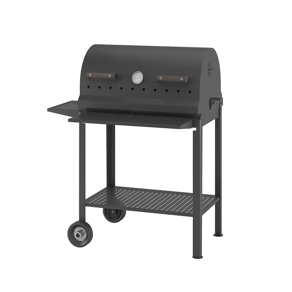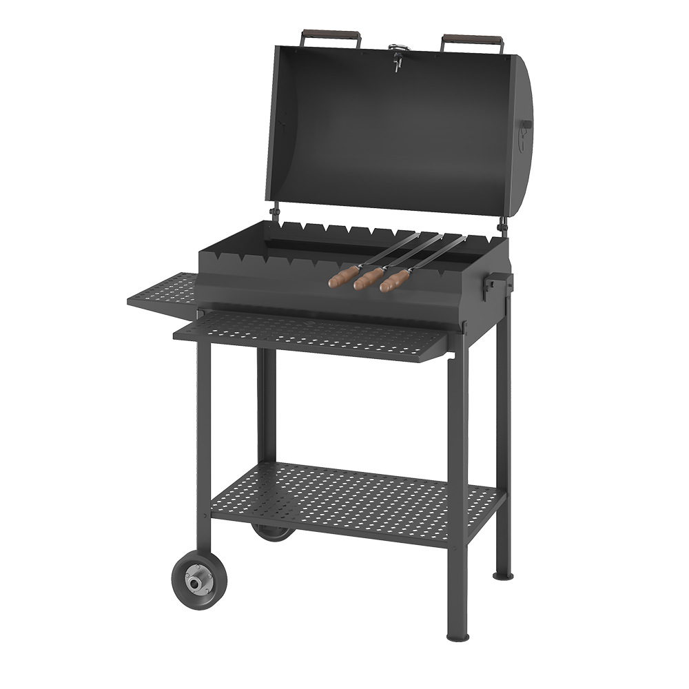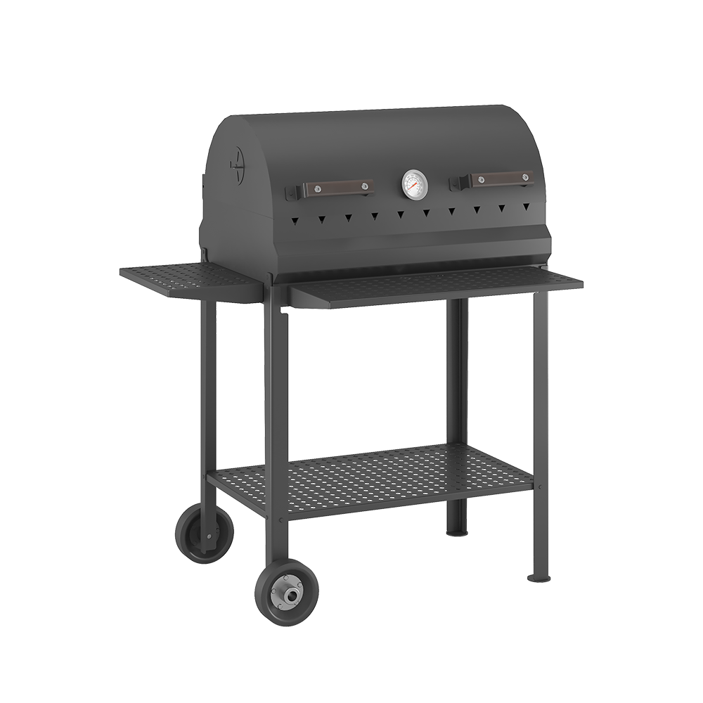 Стальная крышка превращает мангал в полноценный гриль, с возможностью контроля потоков воздуха и готовки под закрытой крышкой.