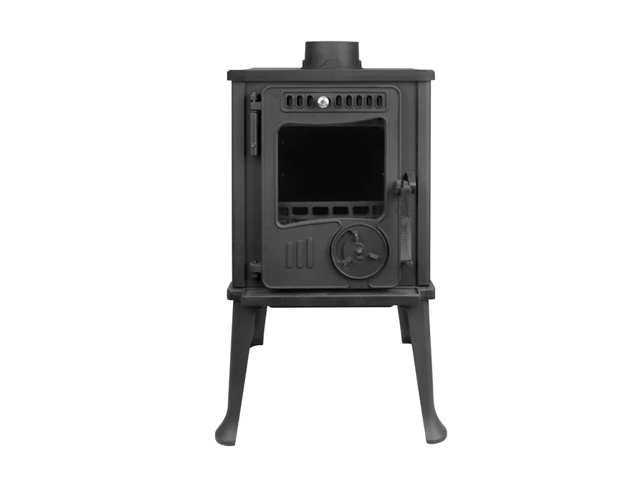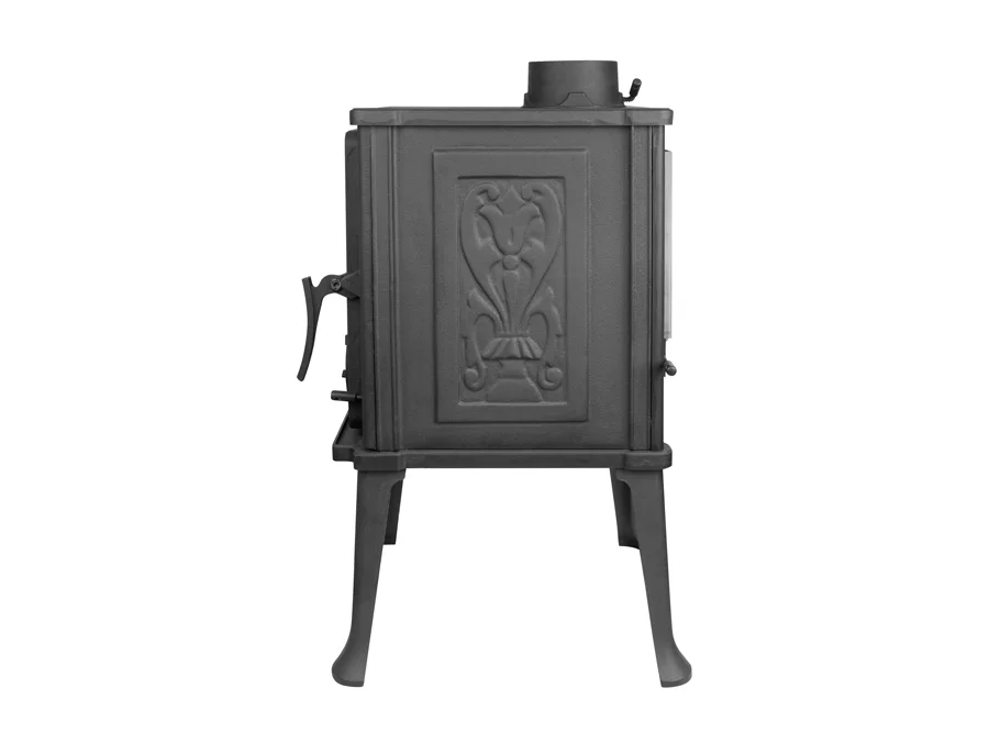 Печь буржуйка Iskra изготовлена из высококачественного чугуна и предназначена для обогрева закрытых помещений. На боковых поверхностях выгравированы красивые орнаменты. Длинные элегантные ножки позволяют устанавливать ее в любом месте Вашего дома. Эта малогабаритная печка способна эффективно отапливать до 40 м², имеет КПД в 78%. Просторный проем топочной дверцы способствует удобной загрузке дров в топку, а благодаря большому термостойкому стеклу открывается замечательный вид на огонь. Модель станет отличным дополнением к Вашему интерьеру