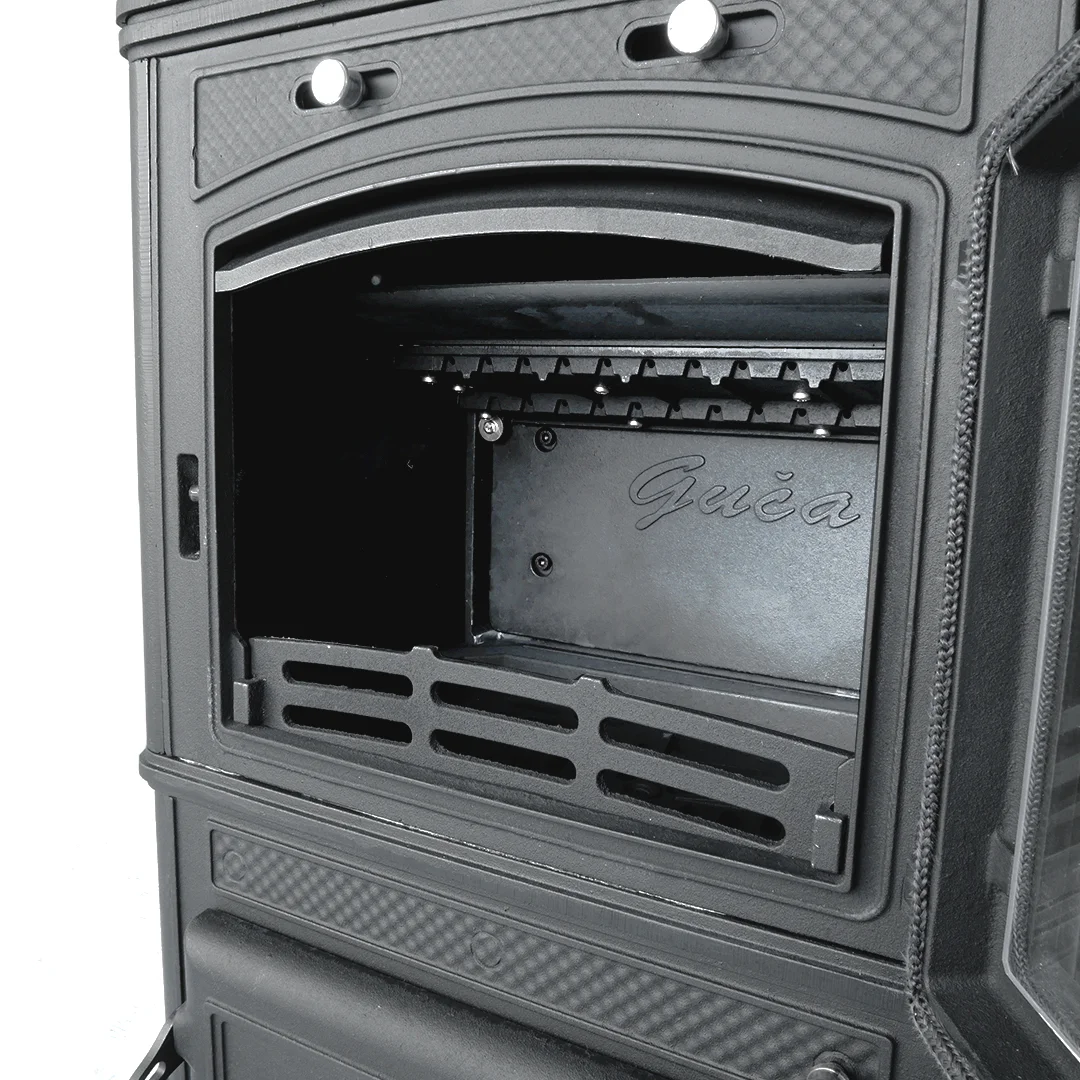 Печь Lava является одной из самых мощных печей, производимых компанией Гуча. Массивный чугунный корпус, внушительная топочная камера и вместительный зольник говорят о серьезных отопительных возможностях этой модели. Верхняя часть корпуса представляет собой большую варочную поверхность. Подключение к дымоходу верхнее и заднее.