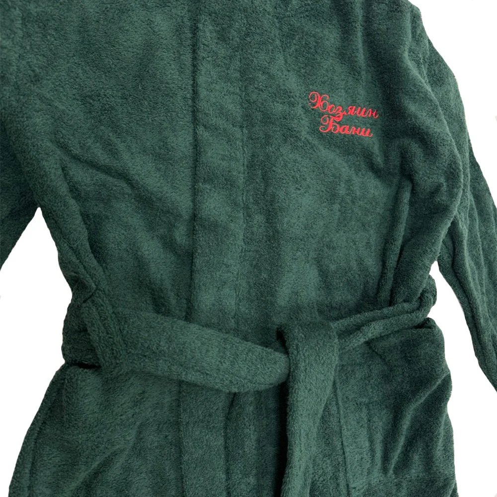 Легкий и удобный халат предназначен для отдыха после посещения парной. Свободный покрой с двумя карманами и поясом.