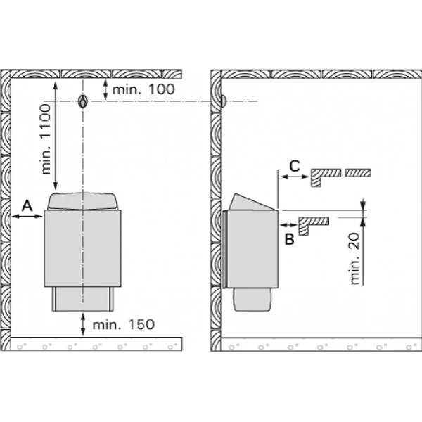 - Безопасное расстояние C до верхнего полка, мм: 80
