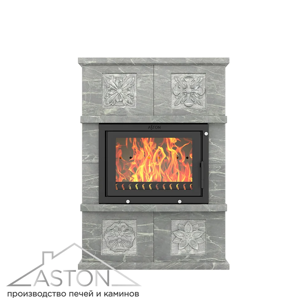 Облицовка для каминной топки АСТОН 600 сделана из натурального талькохлорита. Талькохлорит быстро прогревается, хорошо держит тепло и обладает свойством медленно и равномерно отдавать энергию в окружающее пространство. Облицовка из этого камня долго остаётся тёплой даже после окончания работы каминной топки.