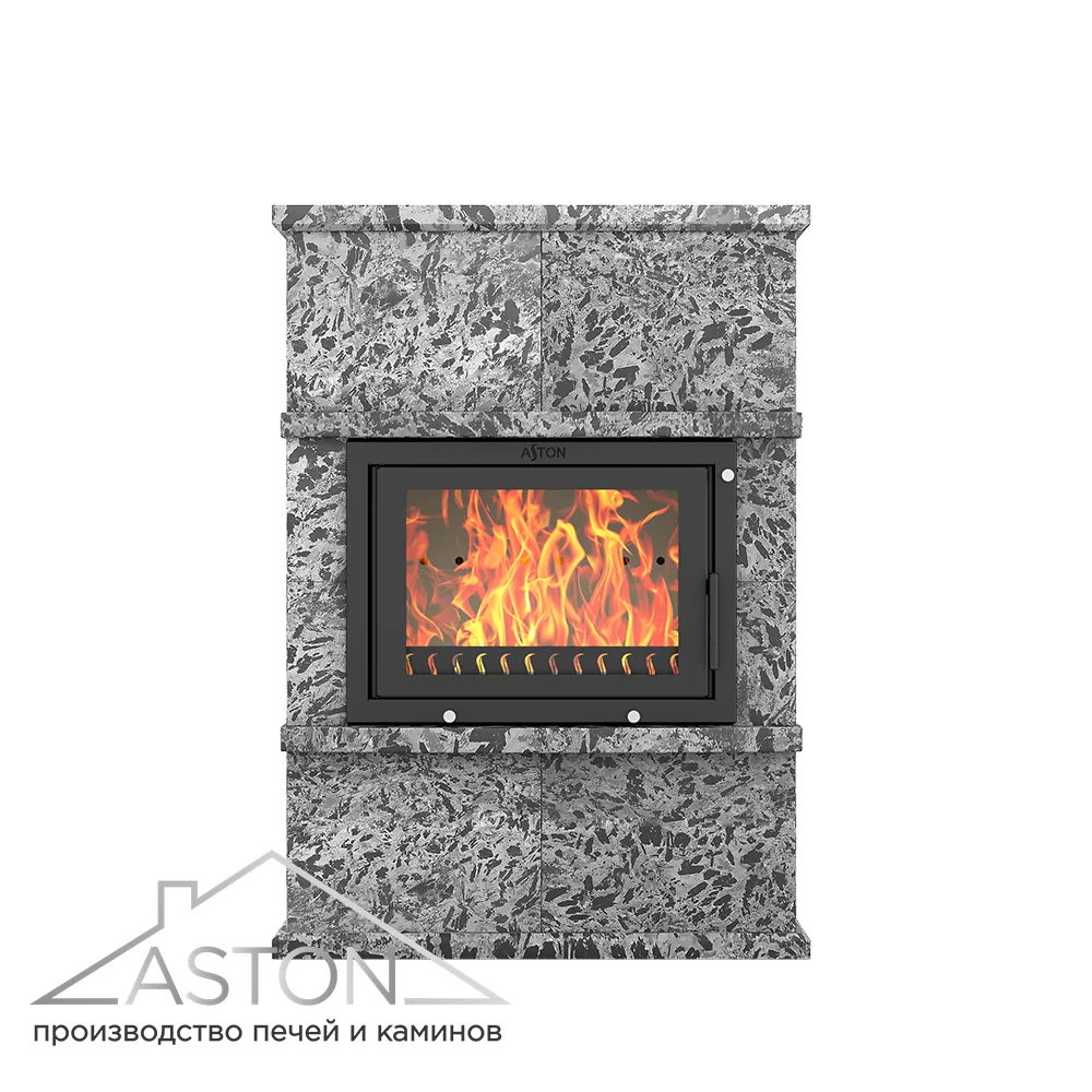 Облицовка для каминной топки АСТОН 600 сделана из натурального пироксенита. Пироксенит быстро прогревается, хорошо держит тепло и обладает свойством медленно и равномерно отдавать энергию в окружающее пространство. Облицовка из этого камня долго остаётся тёплой даже после окончания работы каминной топки. Вес облицовки 280 килограммов. Толщина плиты 4 см.