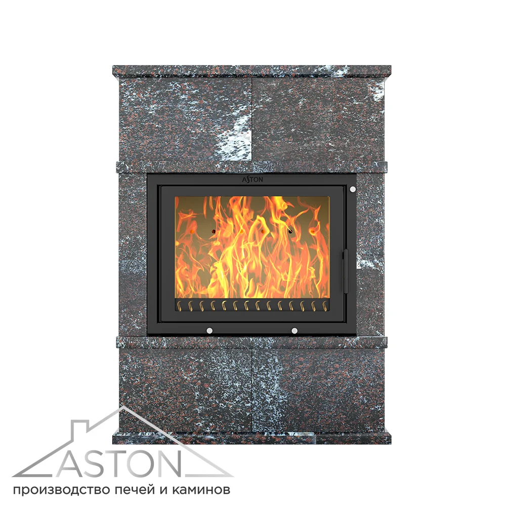Облицовка для каминной топки АСТОН 700 сделана из натурального амфиболита. Амфиболит быстро прогревается, хорошо держит тепло и обладает свойством медленно и равномерно отдавать энергию в окружающее пространство. Облицовка из этого камня долго остаётся тёплой даже после окончания работы каминной топки. Вес облицовки 280 килограммов. Толщина плиты 4 см.