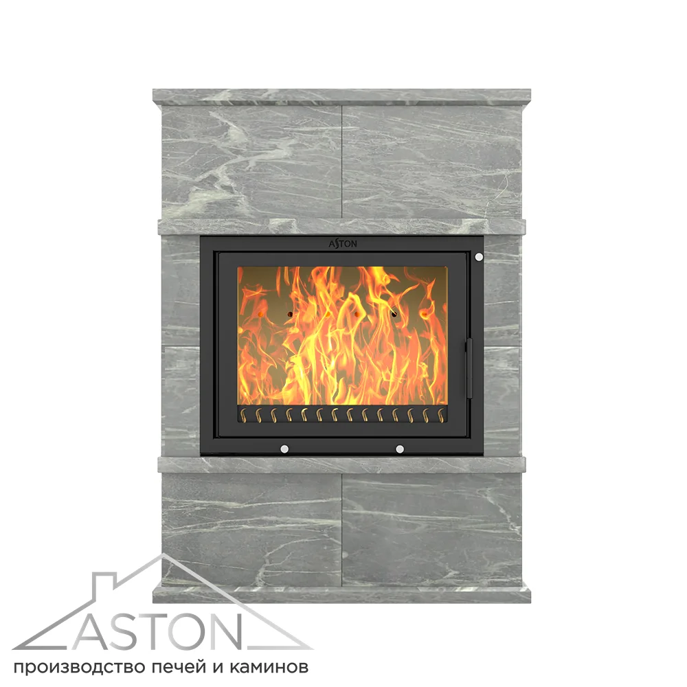 Облицовка для каминной топки АСТОН 700 сделана из натурального талькохлорита. Талькохлорит быстро прогревается, хорошо держит тепло и обладает свойством медленно и равномерно отдавать энергию в окружающее пространство. Облицовка из этого камня долго остаётся тёплой даже после окончания работы каминной топки.