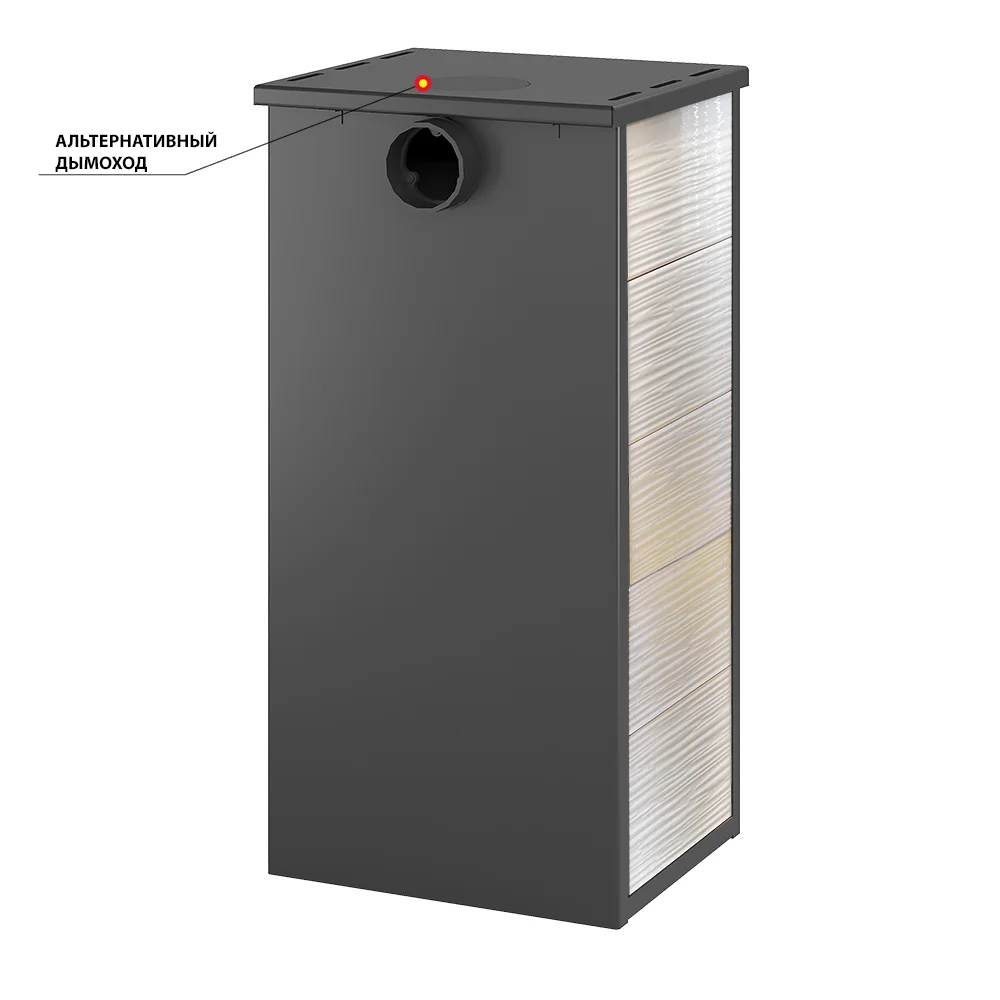 Керамическая плитка на боковых поверхностях печи-камина помогает правильно распределят тепло и защищает пространство от жёсткого излучения, которое исходит от нагретой печи. Печь-камина ЭТНА БКД может комплектоваться бежевой или чёрной плиткой (модели «Бежевая» или «Антрацит»).Плитка легко снимается и может быть заменена при повреждении подобной плиткой такого же размера.