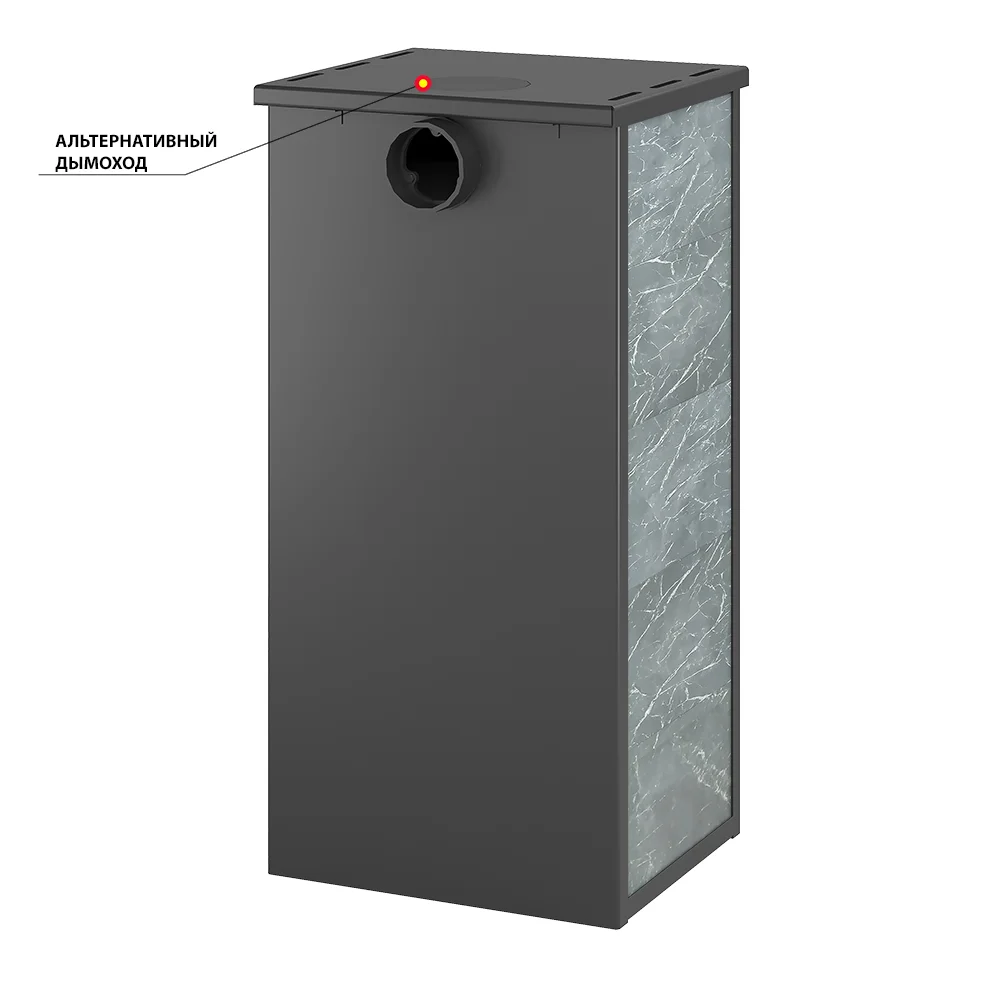 Патрубок дымохода печи-камина ЭТНА устроен на задней стенке печи и имеет диаметр 115миллиметров. Он предназначен для подключения дымохода и вывода продуктов горения в атмосферу.