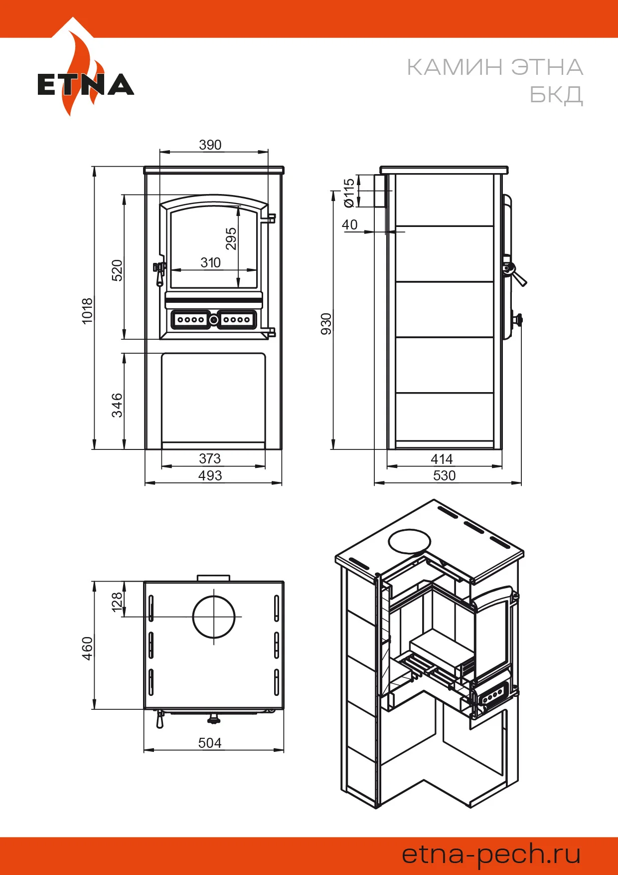 Конструкция печи-камина ЭТНА БКД с плитой разработана с учётом необходимости быстрого разогрева помещения и последующего длительного поддержания теплового комфорта в загородном доме, на даче или в другом ограниченном пространстве. ЭТНА БКД рассчитана на пристенное размещение. Чугунная плита обеспечивает приготовление или разогревание еды.