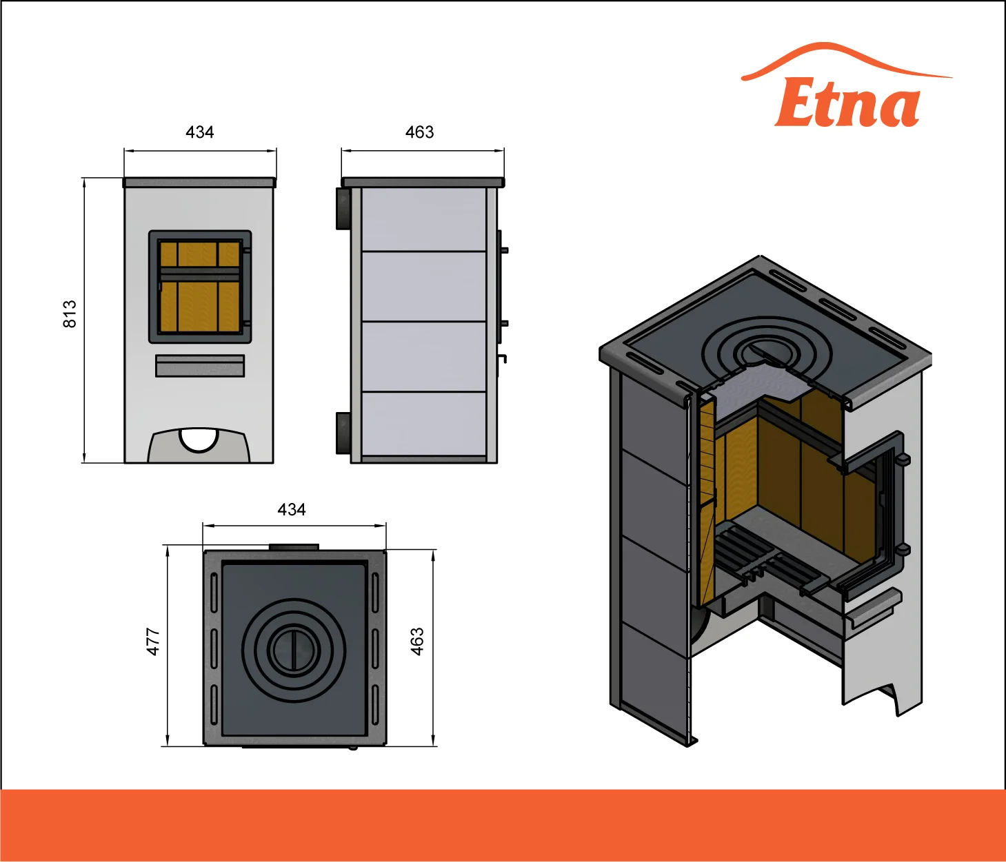 Все элементы печи-камина ЭТНА сделаны из особо прочной стали марки 09Г2С. Эта сталь предназначена для длительной работы в условиях повышенной термической нагрузки. Толщина металла на конструкционных элементах печи составляет 4 миллиметра.