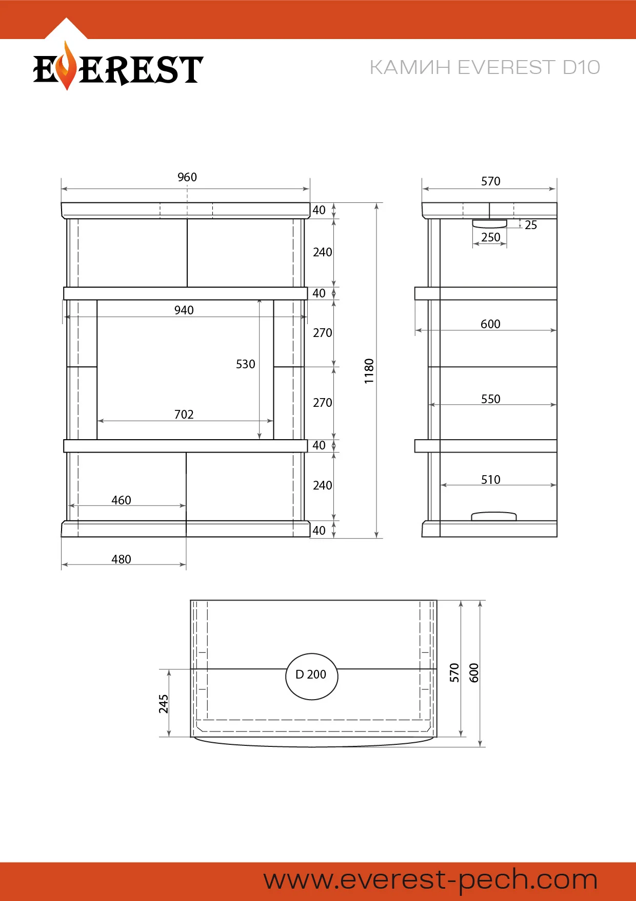 Облицовка изготовлена специально для топки EVEREST D10 и учитывает все функциональные возможности теплового агрегата.