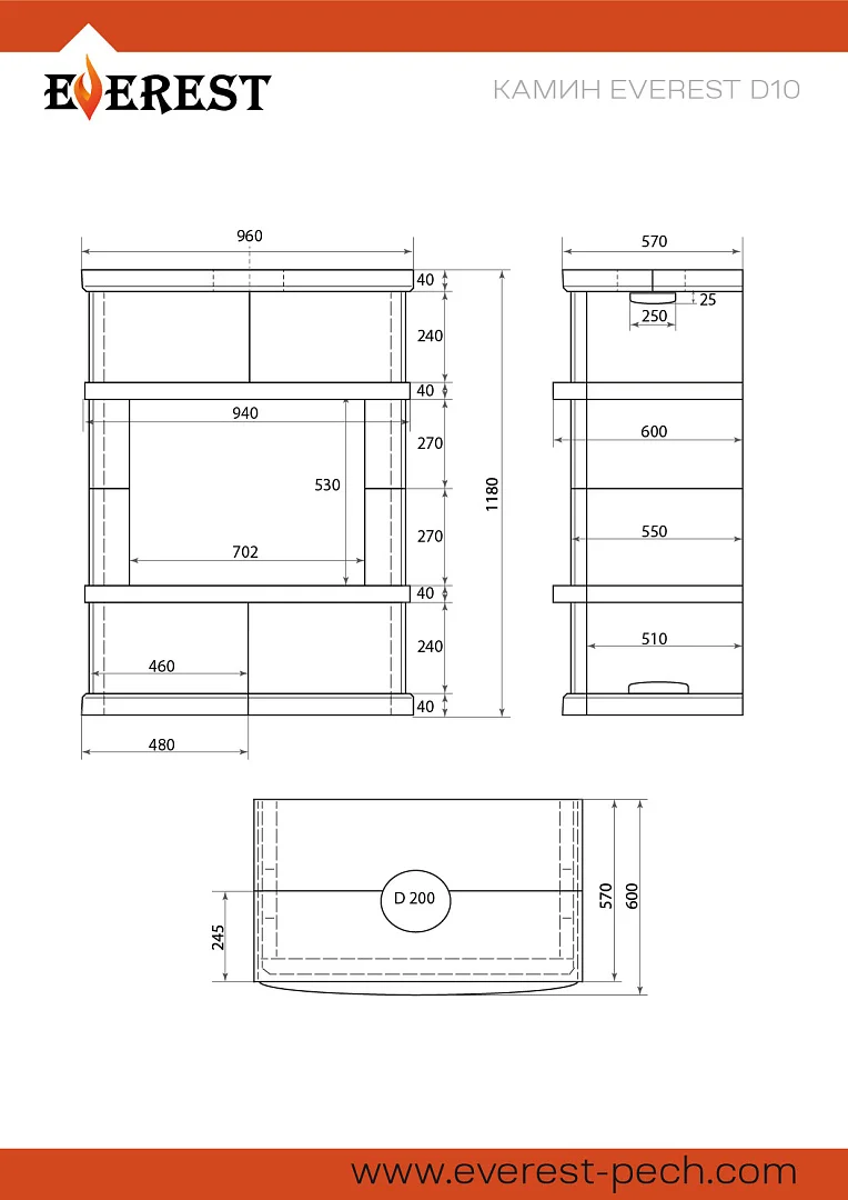 Облицовка изготовлена специально для топки EVEREST D10 и учитывает все функциональные возможности теплового агрегата.