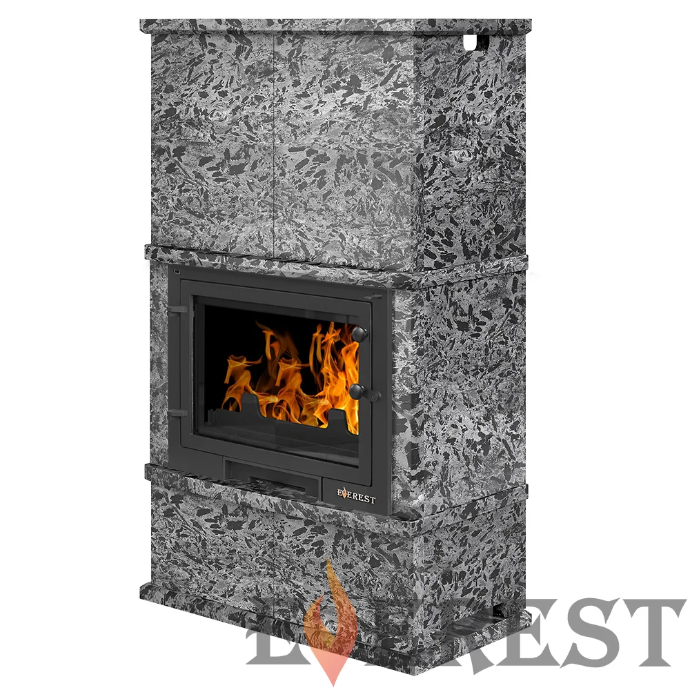 Камин EVEREST «VYBORG» Талькохлорит представляет собой комплект из топки EVEREST Z14 и наружной облицовки из натурального камня талькохлорита. Высота облицовки позволяет установить отвод на топку, что делает подключения к дысоходу универсальным.