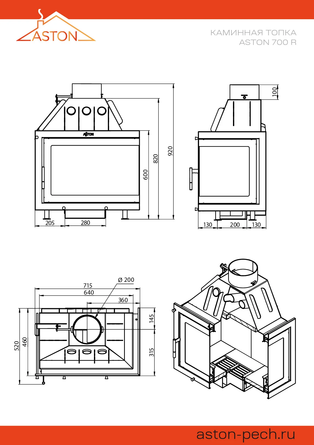 Стальная каминная топка АСТОН 700 R рассчитана на прогрев помещений объёмом до 250 кубических метров. Топочная камера изготовлена из особо прочной котловой стали, рассчитана на пристенное размещение.