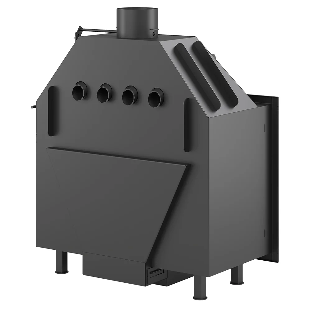 Топка оборудована системой вторичного дожига дымовых газов, которая позволяет получить максимум энергии при горении дров. Каналы вторичного дожига расположены на задней стенке топочной камеры прямо в вермикулитовой облицовке.