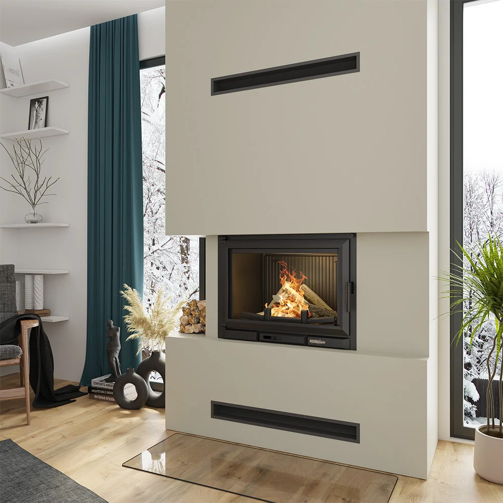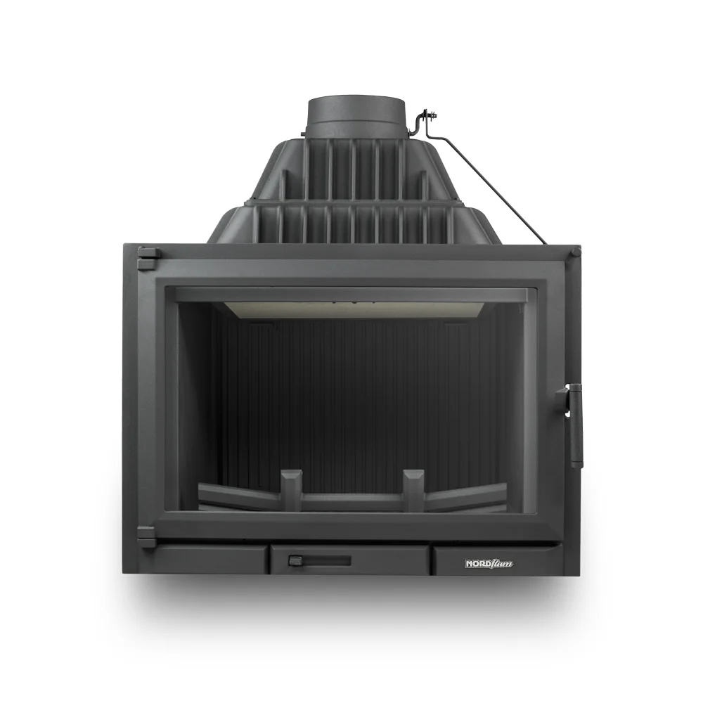 Nordflam Remus - чугунная каминная топка от польского производителя. Она имеет прямое термостойкое стекло и боковое открывание дверцы. Оборудована шиберной заслонкой, зольным ящиком, двойной задней стенкой и двойным дефлектором. Можно регулировать подачу воздуха в топку. Топки Nordflam производятся в Польше фирмой Ekkom. Все каминные топки изготовляют из высококачественного чугуна, а также отвечают всем современным требованиям стандартов качества. Оборудованы двойной задней стенкой, шиберной заслонкой, а также подводом воздуха в верхнюю часть топки снаружи. Топки Nordflam имеют высокий КПД и пригодны для отопления достаточно больших помещений. Также просты в установке, имеют компактные размеры и небольшой вес.