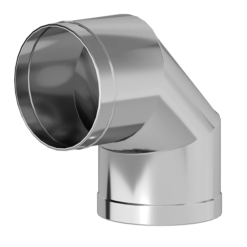 Колено используется для изменения направления труб дымохода на угол 90 градусов. Изготовлено из нержавеющей стали толщной 0,8 мм.