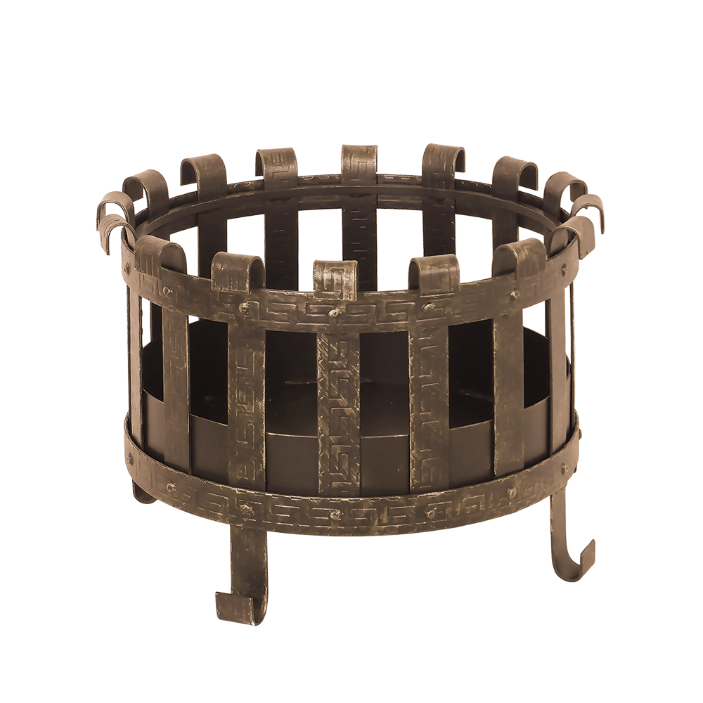 Чаша изготовлена из стали, декорирована стальной кованой полосой шириной 40 миллиметров. Надёжное основание чаши сохраняет её форму во время нагревания от костра. Стальной короб округлой формы на дне изделия предназначен для размещения дров и сбора углей и золы.