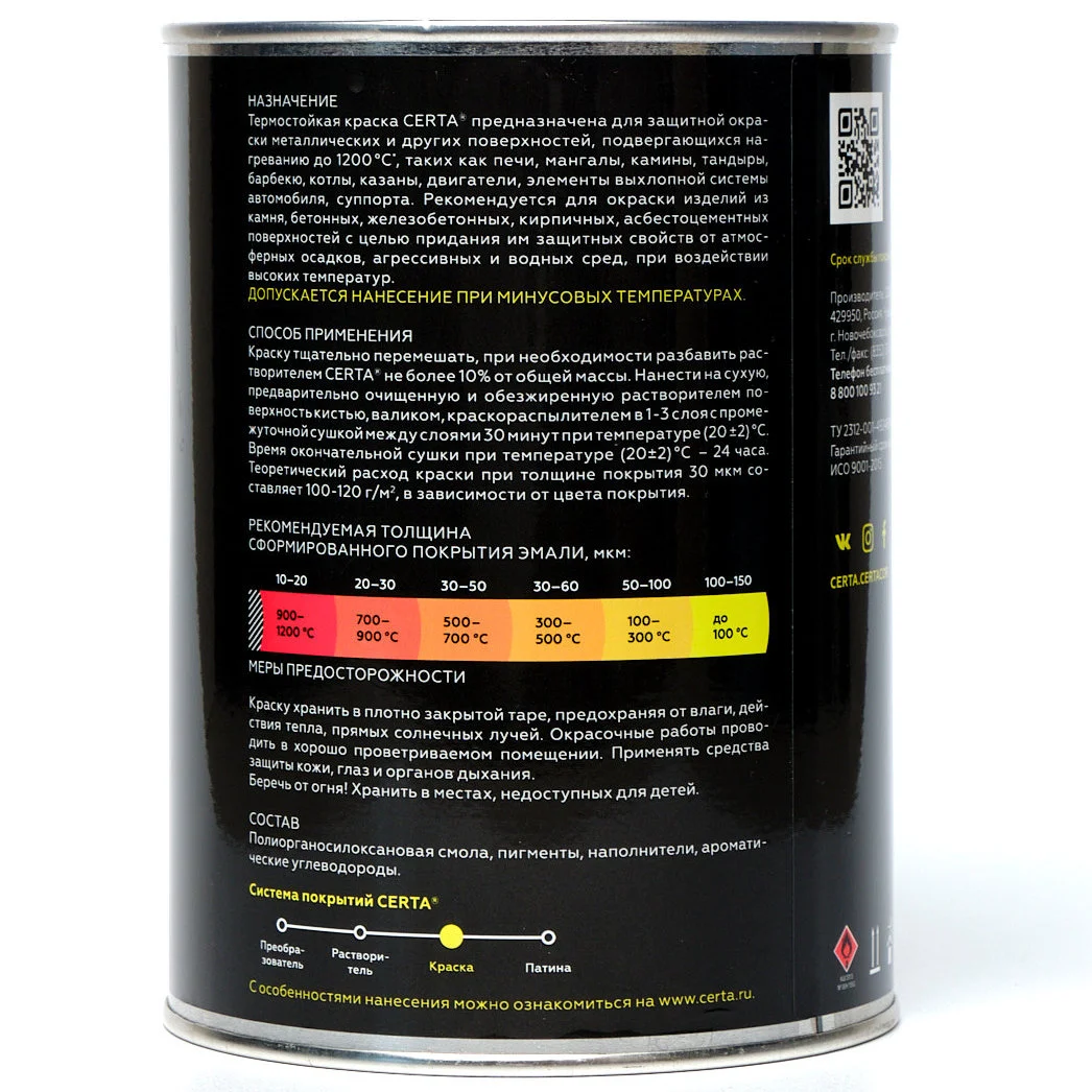 Антикоррозийная термостойкая краска предназначена для защитной антикоррозионной окраски металлического оборудования, работающего в условиях повышенной влажности и температуры, печей для саун, бань, дымовых труб.