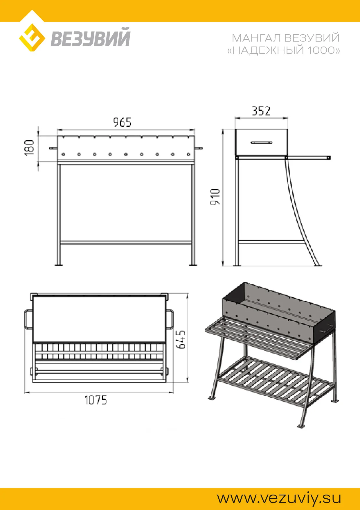 Серия мангалов от компании «Везувий» получила вполне заслуженное название «Надежный» — все мангалы данной серии произведены из 6 мм котловой стали и покрыты термостойкой кремнийорганической эмалью. Современное оборудование и технологии производства компании «Везувий» гарантируют высокое качество продукции.