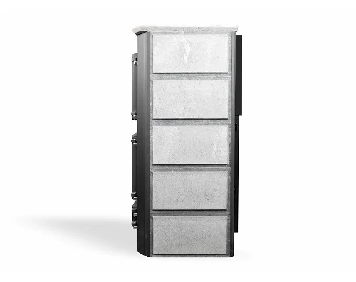 - печь изготовлена из чугуна и облицована натуральным камнем;