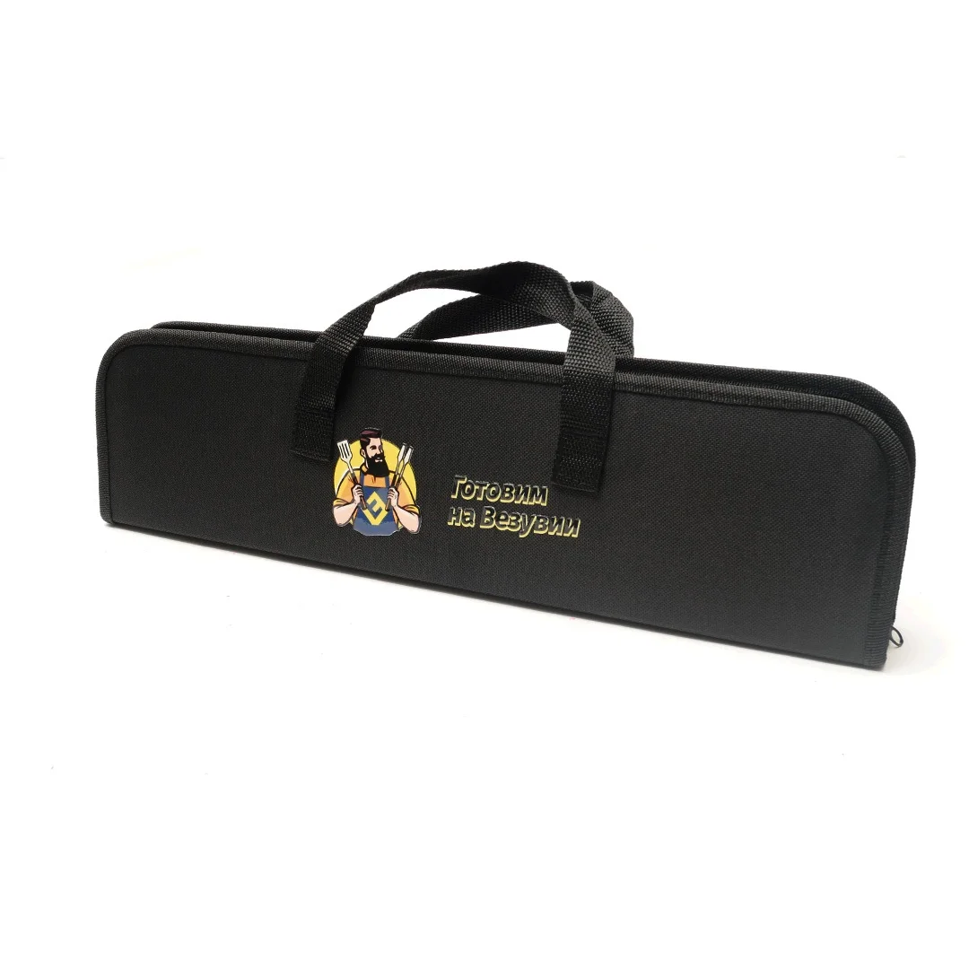 Все аксессуары изготовлены из качественной нержавеющей стали, разрешённой для применения в пищевой промышленности. Деревянные ручки аксессуаров позволяют удобно работать у открытого огня.